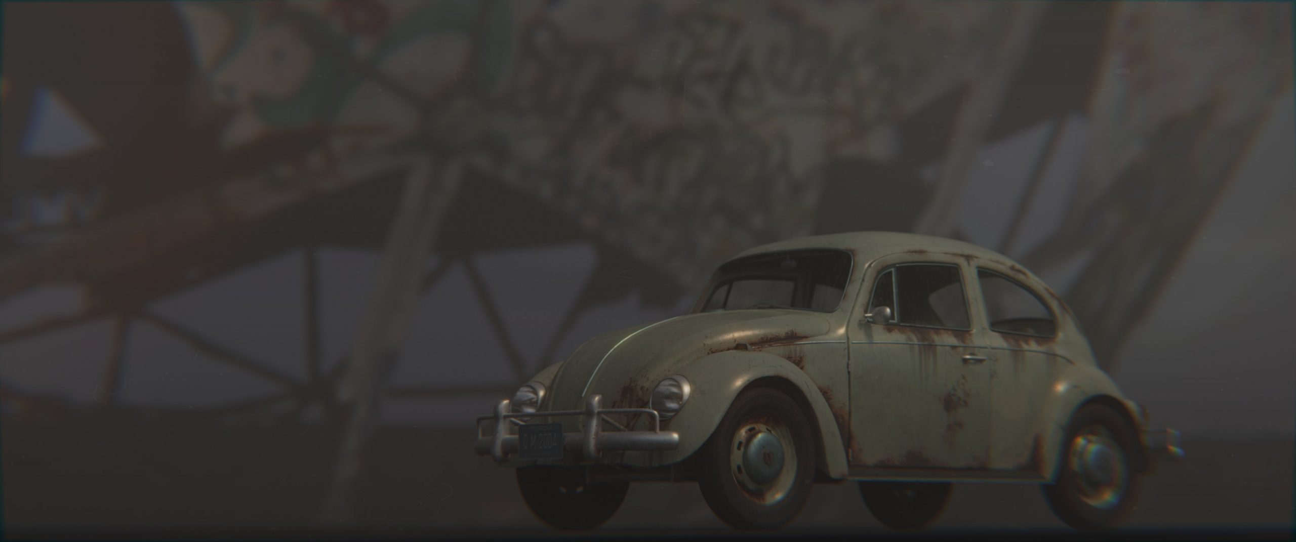 There’s a certain allure to the post-apocalyptic, a haunting beauty in decay. I found a free VW Beetle model on Sketchfab and let my imagination run wild. A few tweaks to the materials, a moody HDRI backdrop, and voilà: a forgotten relic in the desolate corners of West Berlin, bathed in the melancholic glow of a dying sun.